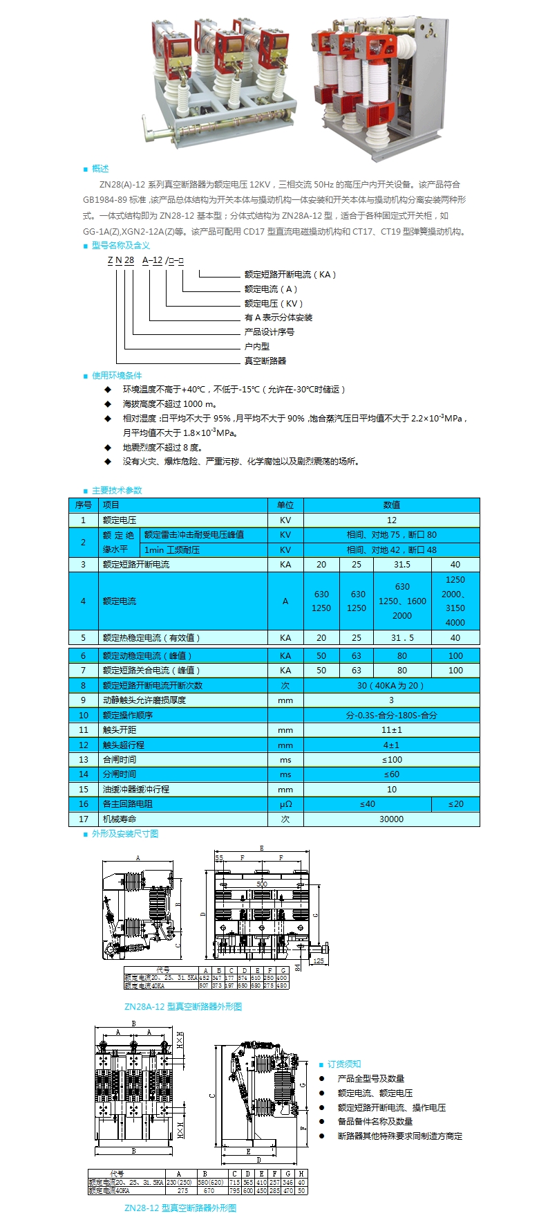 ZN28(A)-12型戶內高壓真空斷路器