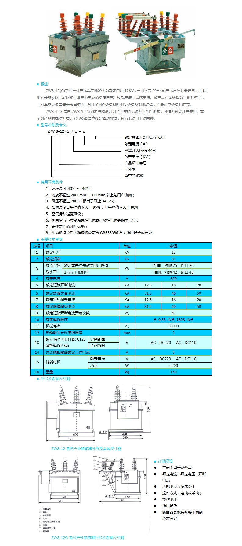 | ZW8-12(G)型戶外高壓真空斷路器 | |