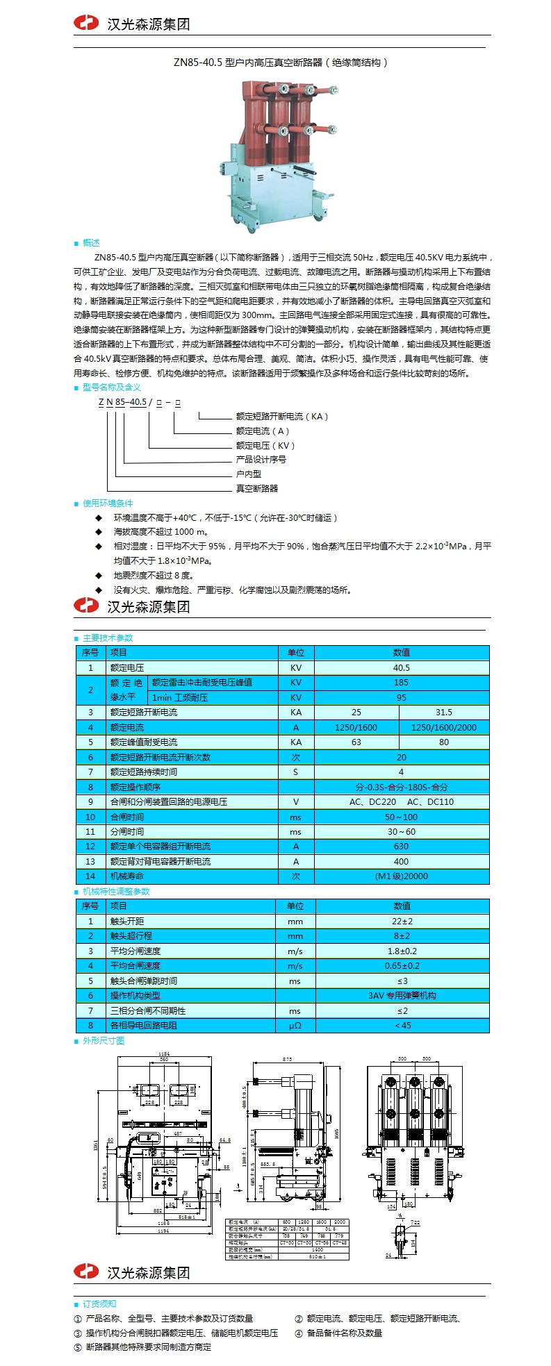 ZN85-40.5型戶內(nèi)高壓真空斷路器(絕緣筒結(jié)構(gòu))