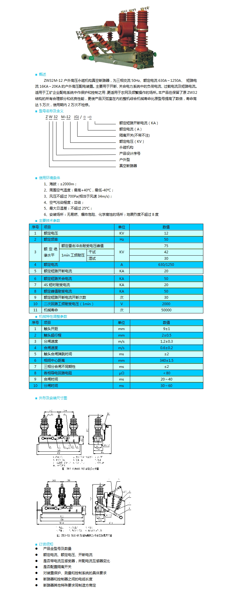 ZW32M-12型永磁機(jī)構(gòu)戶外高壓真空斷路器